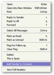- Select "Add Sender to Contacts" option on the shortcut menu.